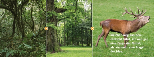 Welcher Weg aus dem Dickicht führt, ist weniger eine Frage der Mittel, als vielmehr eine Frage der Idee. Alte und junge Medien sind gleichermaßen willkommen, wir freuen uns auf Ihren Besuch.
